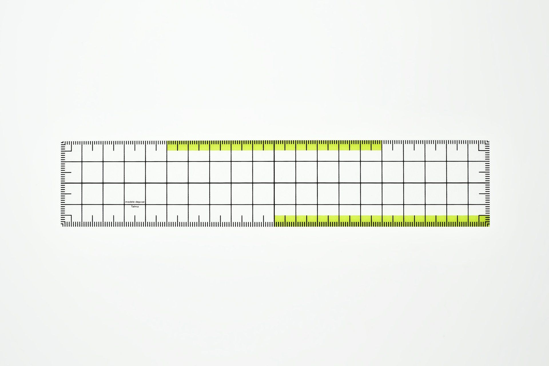 Le décimètre-carré a pour dimensions 10 cm x 10 cm et les règles 20 cm x 4 cm.