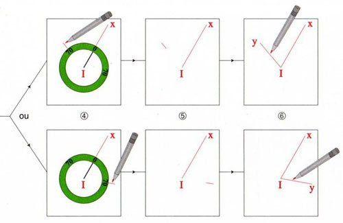 On place le rapporteur de sorte que son centre coïncide avec I et son axe polaire avec Ix.