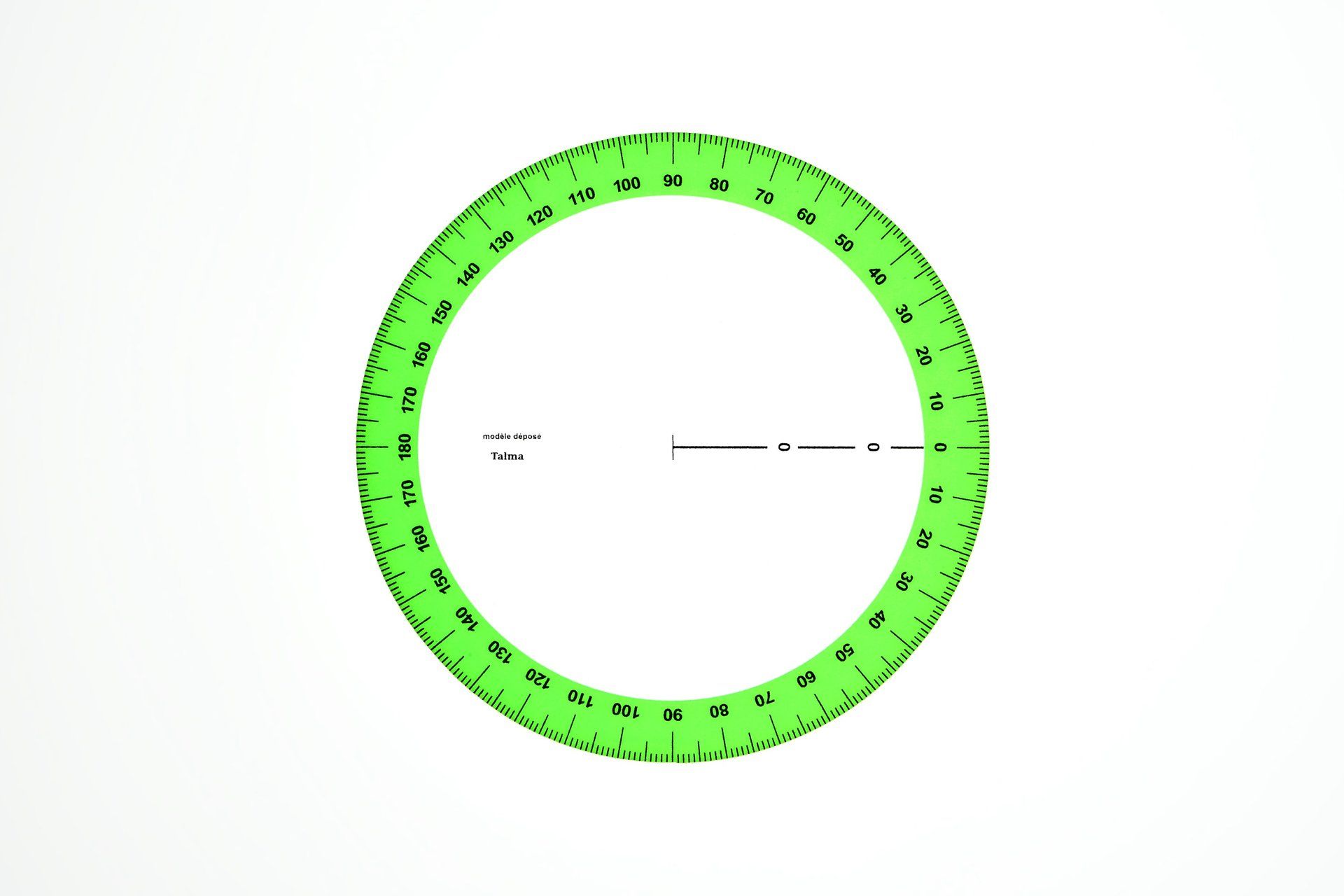 Les rapporteurs ont pour diamètre 10 cm, le Grand rapporteur polaire 34,5 cm.